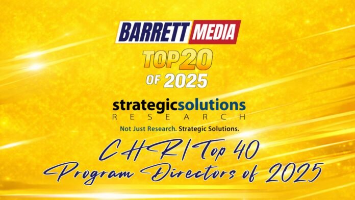 I want to thank Dylan Barrett for creating the artwork for the entire Top 20 series, and every CHR/Top 40 voter who participated in the voting process. Now without further delay, here are Barrett Media’s Top 20 CHR/Top 40 Program Directors of 2025.