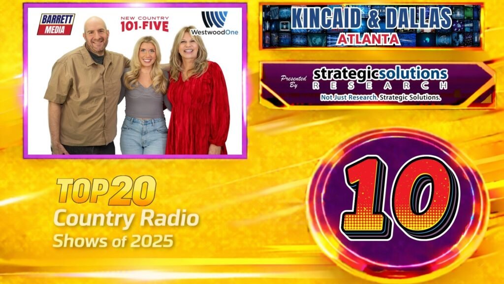 Welcome to day six and week two of Barrett Media’s Top 20 of 2025 in Music Radio presented by Strategic Solutions Research. Strategic Solutions Research is celebrating its 20th year providing strategic research, music testing and personality content testing for clients in the US and in 22 countries. Please reach out and give a special thanks to Hal Rood and Kevin Cassidy for supporting the Top 20 series and the entire music radio industry.
