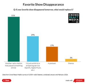 So yes, formatted music still matters. People still identify as Country fans or Rock fans or whatever their tribe is. But here’s the thing – Spotify can deliver those songs too. What Spotify can’t deliver is the combination of YOUR music, local connection, and compelling personalities who understand your market and your tastes. That’s radio’s edge.